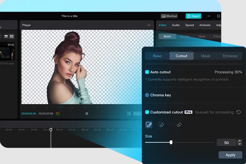 Auto Cutout của CapCut Desktop mang đến một cách tiếp cận hoàn toàn khác. Sử dụng AI, hệ thống có thể tự động nhận diện chủ thể và tách khỏi nền chỉ trong vài giây.