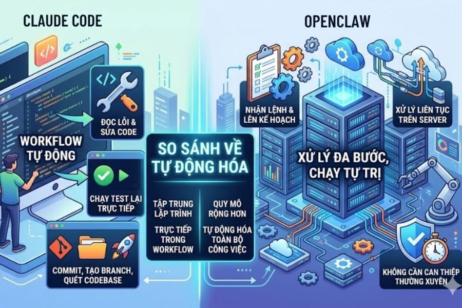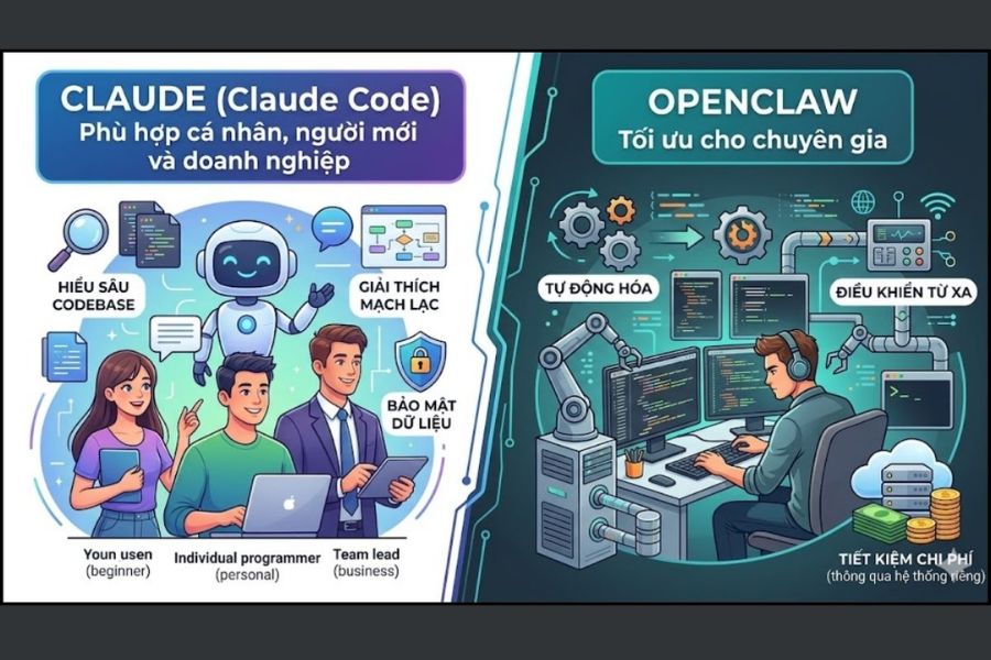 Ngược lại, OpenClaw đóng vai trò như một hệ thống điều phối, cho phép kết hợp nhiều model AI khác nhau tùy nhu cầu. Nhờ đó, người dùng có thể linh hoạt tối ưu giữa hiệu năng và chi phí, đồng thời xây dựng các luồng xử lý tự động phức tạp hơn.