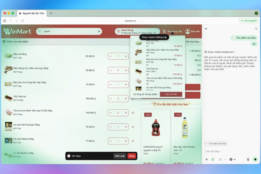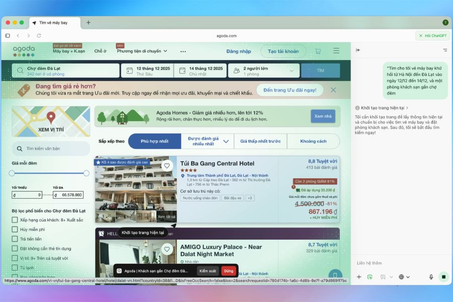 Một trong những tính năng ấn tượng nhất của ChatGPT Atlas chính là Agent Mode chế độ trợ lý tự động có thể thay người dùng thực hiện hàng loạt tác vụ phức tạp. Chỉ với một câu lệnh đơn giản như “Tìm chuyến bay rẻ nhất từ TP.HCM đi Hà Nội vào cuối tuần này”, Atlas sẽ tự động truy cập các trang web liên quan, lọc dữ liệu, so sánh giá và đưa ra lựa chọn tối ưu nhất. Thay vì bạn phải tự tay mở từng trang, tìm từng kết quả và nhập thông tin, Atlas sẽ làm tất cả chỉ trong vài giây, mang đến trải nghiệm duyệt web hoàn toàn chủ động.
