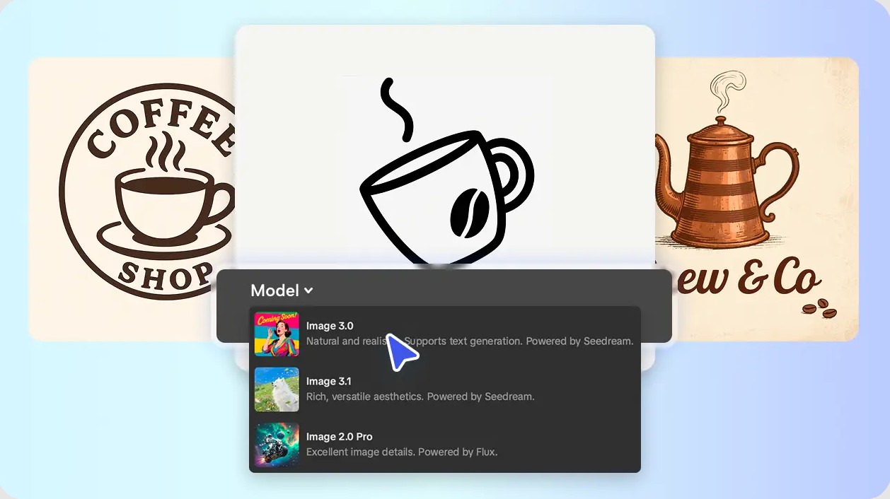 Việc cho phép lựa chọn mô hình AI ngay từ đầu giúp CapCut vượt trội hơn nhiều công cụ tạo logo AI miễn phí khác vốn chỉ cho ra một kiểu kết quả cố định.