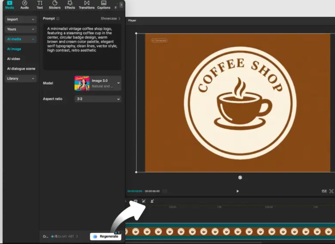 Có, logo do AI tạo ra CapCut có thể được tùy chỉnh sau khi tạo. Bạn có thể thêm các yếu tố văn bản mới như tên thương hiệu của mình, chèn nhãn dán hoặc biểu tượng và áp dụng hiệu ứng hình ảnh để nâng cao giao diện tổng thể. Những công cụ này cho phép bạn cá nhân hóa diện mạo của logo mà không làm thay đổi thiết kế ban đầu do AI tạo ra.