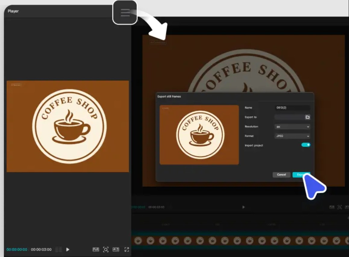 Khi đã hài lòng với thiết kế, người dùng chỉ cần chọn “Xuất khung hình tĩnh”, lựa chọn độ phân giải mong muốn (lên đến 8K) và định dạng phù hợp để tải về logo hoàn chỉnh.