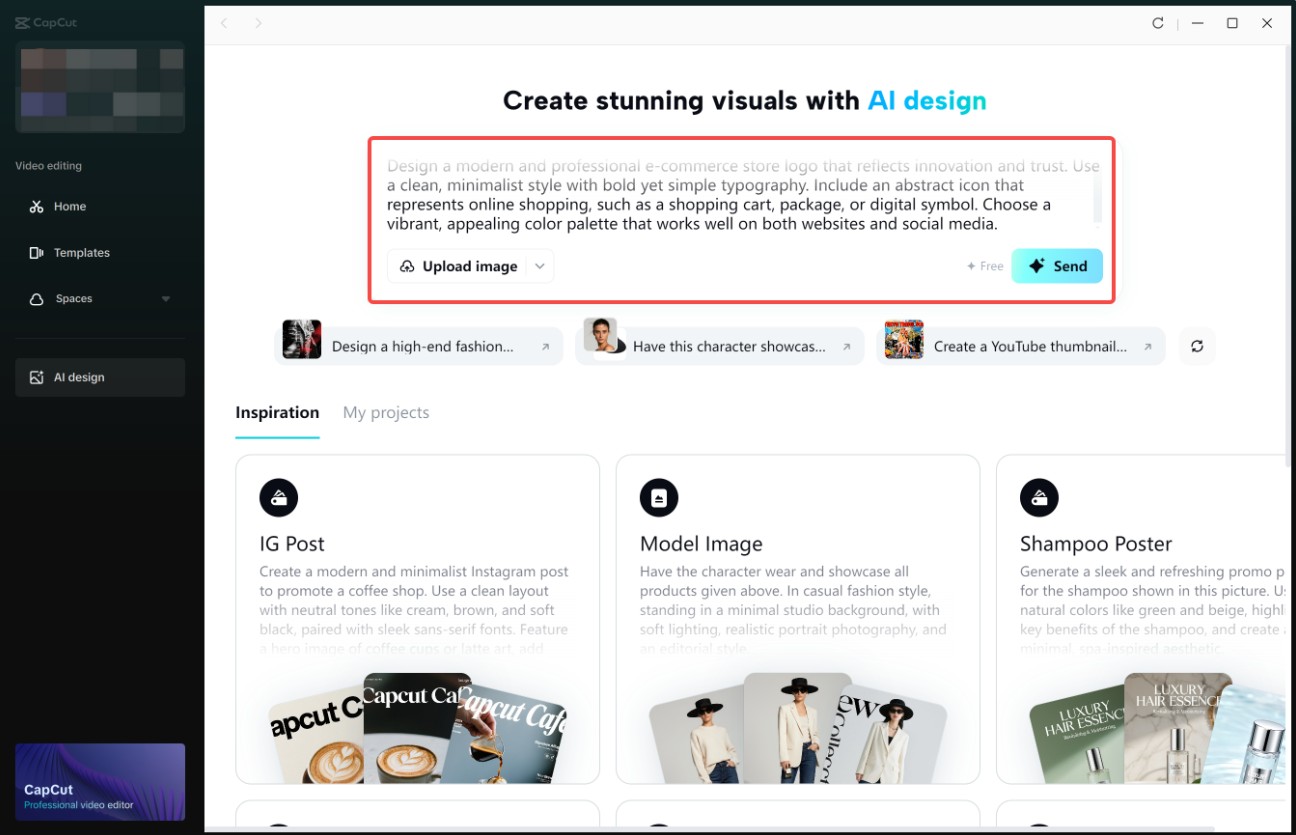 CapCut cũng cung cấp phiên bản Thiết kế AI trên nền tảng web, giúp người dùng tạo logo trực tuyến mà không cần cài đặt phần mềm.