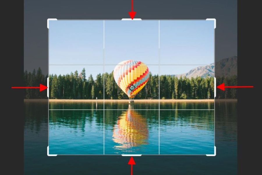 Sau khi chọn Crop Tool, Photoshop sẽ hiển thị một khung cắt bao quanh toàn bộ hình ảnh. Đây chính là khu vực giúp bạn xác định phần ảnh sẽ được giữ lại hoặc loại bỏ. Việc làm quen với công cụ này là bước quan trọng, bởi mọi thao tác cắt ảnh trong Photoshop đều bắt đầu từ đây.