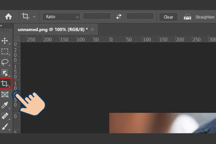 Để bắt đầu crop ảnh trong Photoshop, trước tiên bạn cần chọn đúng công cụ. Trên thanh công cụ bên trái màn hình, hãy tìm biểu tượng Crop Tool (hình khung cắt) và nhấp vào để kích hoạt. Ngoài ra, bạn cũng có thể sử dụng phím tắt C để truy cập nhanh công cụ này, giúp tiết kiệm thời gian khi chỉnh sửa ảnh thường xuyên.