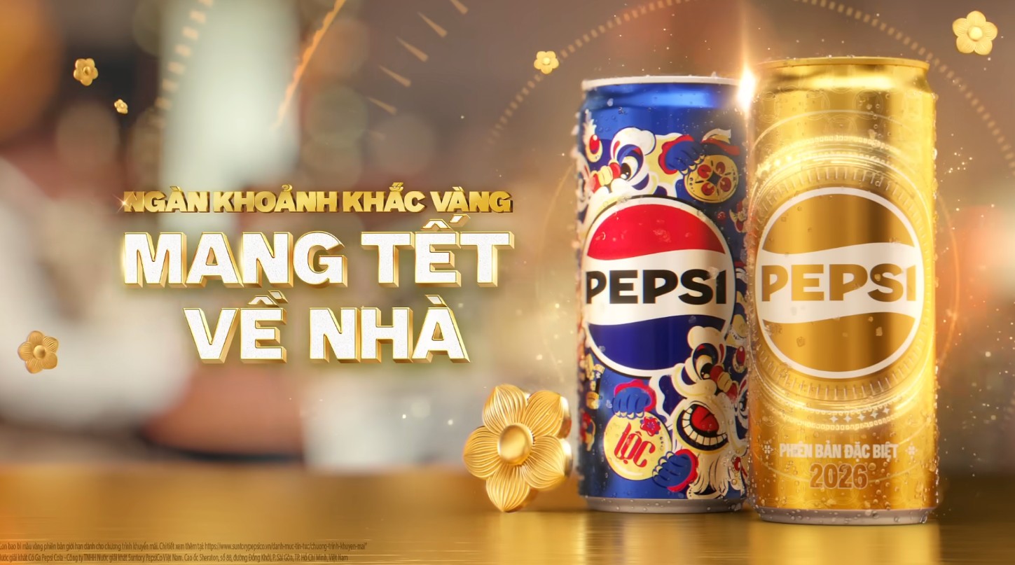 Pepsi tiếp tục khẳng định vị thế dẫn đầu trong cuộc chơi sáng tạo khi giới thiệu bộ bao bì Tết 2026 mang thông điệp “Khoảnh khắc vàng”. Đây không chỉ là một concept thị giác, mà còn là một câu chuyện về thời gian, sự đoàn viên và những giá trị tinh thần mà thương hiệu muốn gắn kết với người tiêu dùng trong dịp đầu năm.