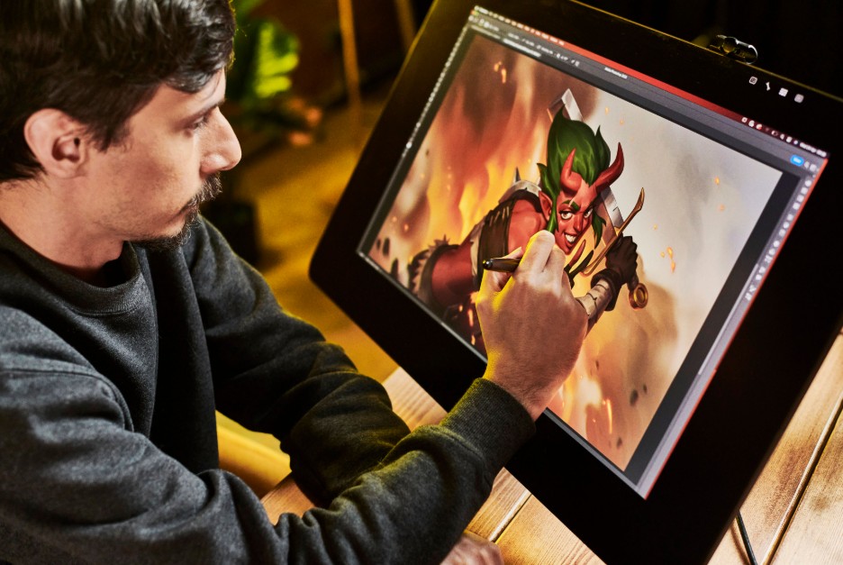 Thiết bị quan trọng nhất là máy tính bảng đồ họa. Đây là “cây cọ” trong thế giới số, cho phép bạn vẽ bằng bút cảm ứng với độ chính xác và độ nhạy lực cao. Những dòng như Wacom Intuos rất phù hợp cho người mới bắt đầu nhờ giá thành hợp lý và dễ làm quen. Trong khi đó, Wacom Cintiq mang đến trải nghiệm chuyên nghiệp hơn với màn hình tích hợp, giúp bạn vẽ trực tiếp lên bề mặt hiển thị như đang vẽ trên giấy. Nếu bạn ưu tiên sự linh hoạt và tính di động, iPad Pro kết hợp với Apple Pencil là lựa chọn mạnh mẽ, phù hợp cho cả học tập lẫn làm việc.