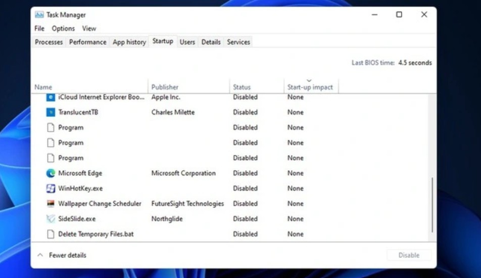 Windows đã cung cấp công cụ rất trực quan: Task Manager → tab “Startup apps”
