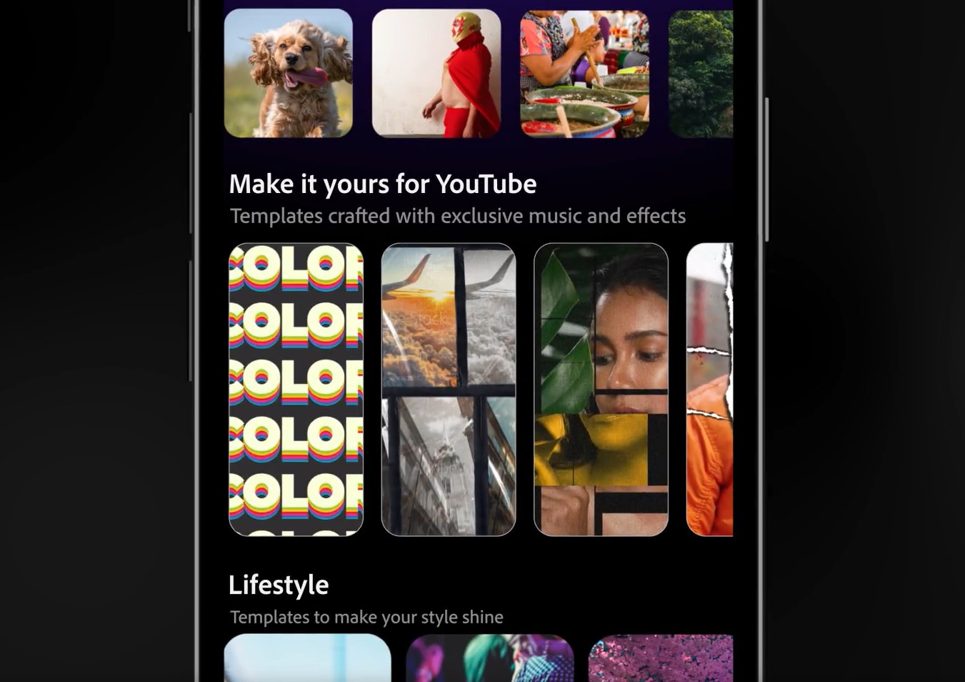Ứng dụng mang đến một thư viện mẫu YouTube Shorts được tuyển chọn kỹ lưỡng từ các nhà sáng tạo hàng đầu và đội ngũ Adobe. Đây là nơi bạn có thể khám phá những phong cách kể chuyện mới, cách sử dụng chuyển cảnh thông minh hay bố cục tiêu đề hiệu quả.