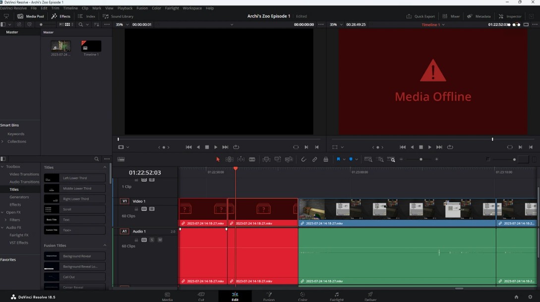 Lỗi “Media Offline” xuất hiện khi DaVinci Resolve không còn tìm thấy file gốc ở vị trí ban đầu. Nguyên nhân phổ biến nhất là bạn đã di chuyển, đổi tên file hoặc thư mục, hoặc ổ cứng ngoài bị ngắt kết nối.