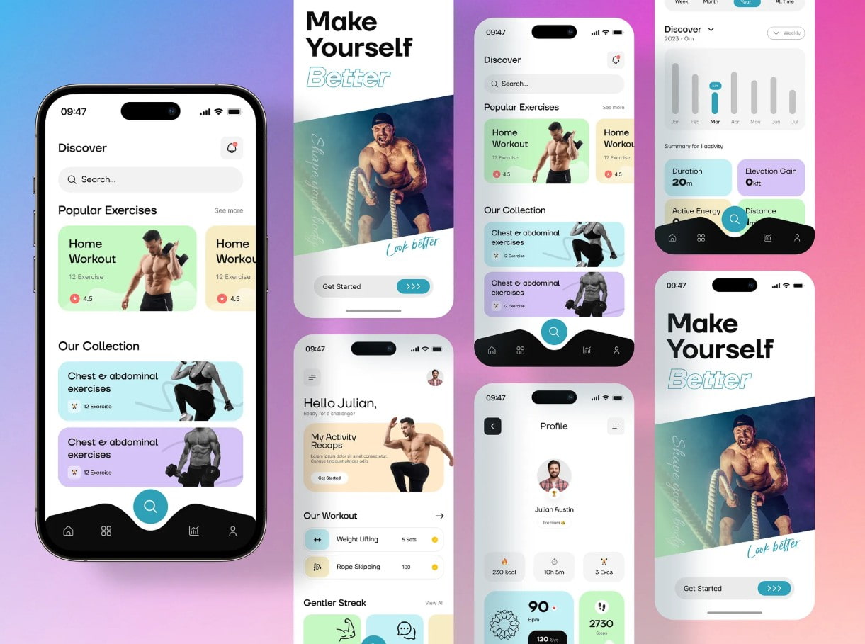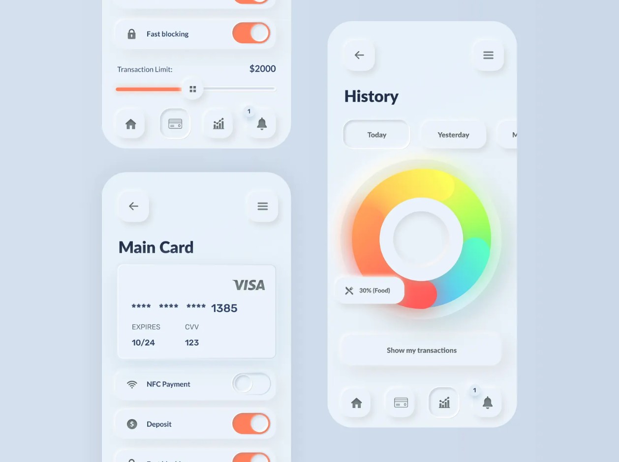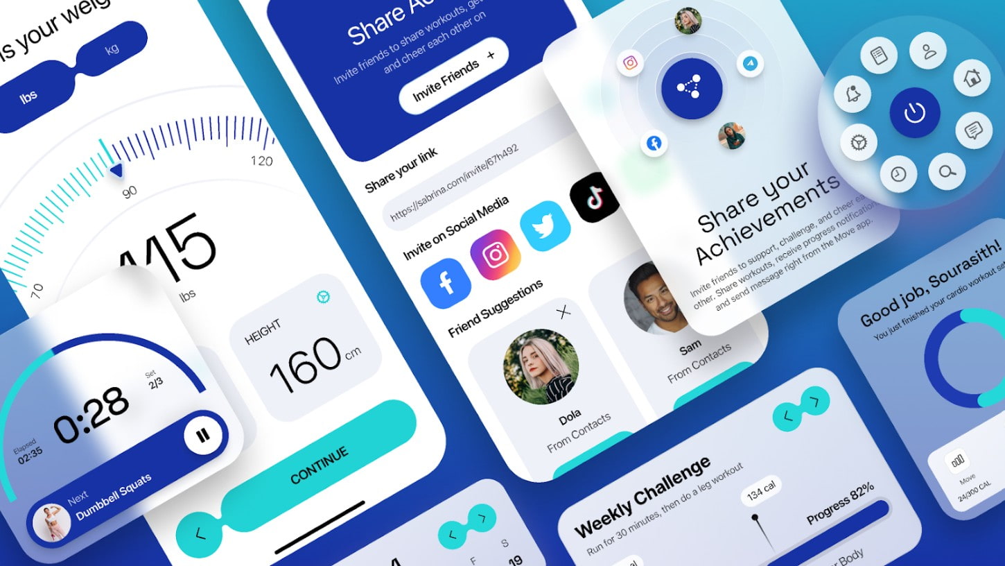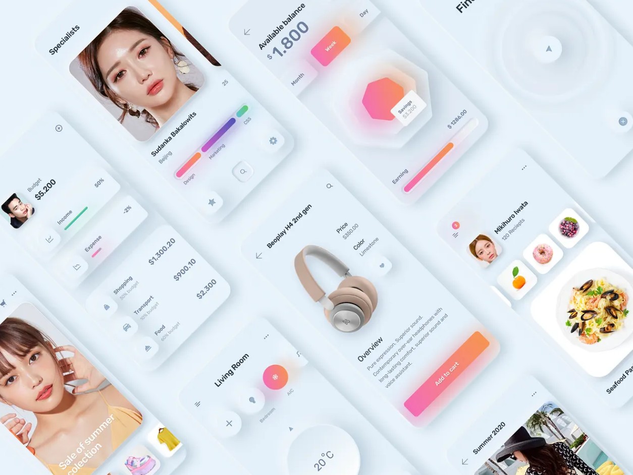 Hybrid UI không cố gắng quá phẳng, nhưng cũng không quá nổi. Nó giữ lại sự nghiêm túc của flat nhưng bổ sung độ sâu cần thiết để tạo cảm giác thân thiện và sống động. Trong thực tế, phong cách này có thể được nhìn thấy ở rất nhiều sản phẩm nổi bật hiện nay, từ ứng dụng sức khỏe đến nền tảng tài chính và giao diện điều khiển xe thông minh.