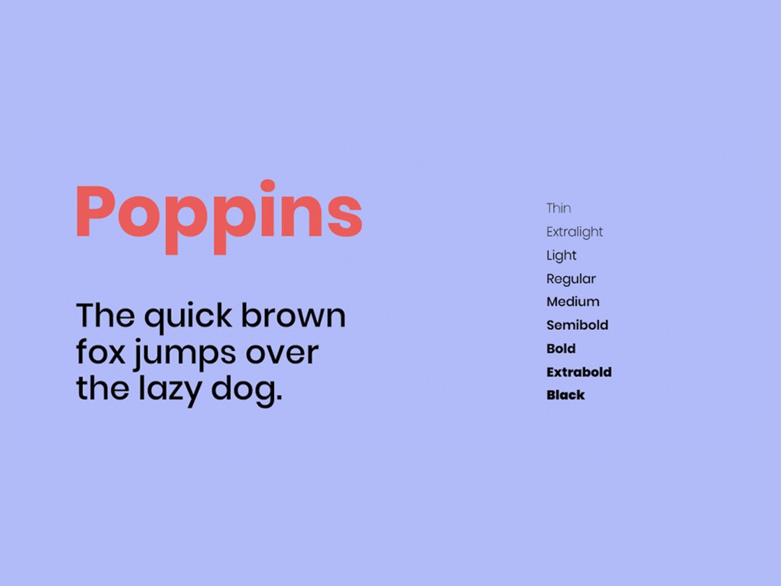 Poppins mang đến cảm giác vui tươi, trẻ trung và đầy năng lượng. Các designer Việt Nam đặc biệt yêu thích font này vì sự đa dạng về trọng lượng và khả năng hỗ trợ tiếng Việt đẹp mắt. Đây là lựa chọn tuyệt vời cho những thương hiệu muốn tạo cảm giác thân thiện nhưng vẫn chuyên nghiệp.