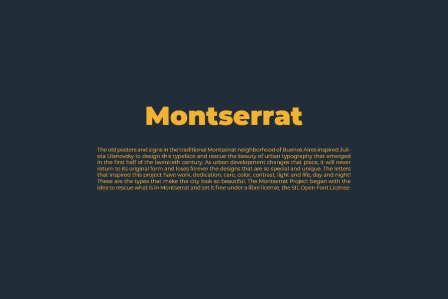 Thiết kế hiện đại: Montserrat là lựa chọn tối ưu, vừa sang trọng vừa chuyên nghiệp, phù hợp cho logo, banner hoặc tiêu đề website