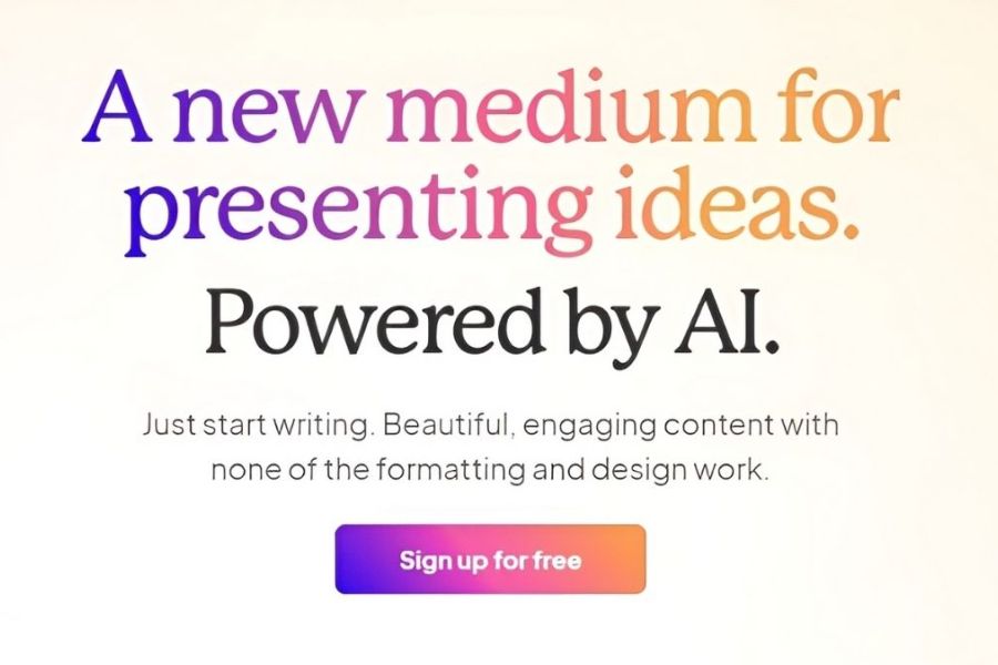 Gamma AI mang đến nhiều lợi ích cho người dùng nhờ khả năng tự động tạo slide thuyết trình nhanh và đẹp. Công cụ này giúp tiết kiệm thời gian đáng kể khi bạn không cần thiết kế từng trang một, chỉ cần nhập chủ đề và nội dung, hệ thống sẽ tự tạo bố cục và trình bày thông tin rõ ràng. Giao diện trực quan giúp người mới tiếp cận dễ dàng và không đòi hỏi kỹ năng chuyên sâu về thiết kế. Nhờ đó, Gamma AI trở thành lựa chọn phù hợp cho học sinh, sinh viên, nhân viên văn phòng và những người thường xuyên phải chuẩn bị bài trình bày.
