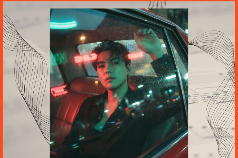 Một khung cảnh đầy chất điện ảnh: chiếc taxi cũ chạy trong đêm mưa, ánh đèn neon hắt qua kính ướt, người ngồi trong xe nhìn xa xăm.