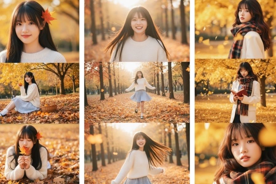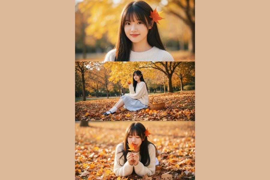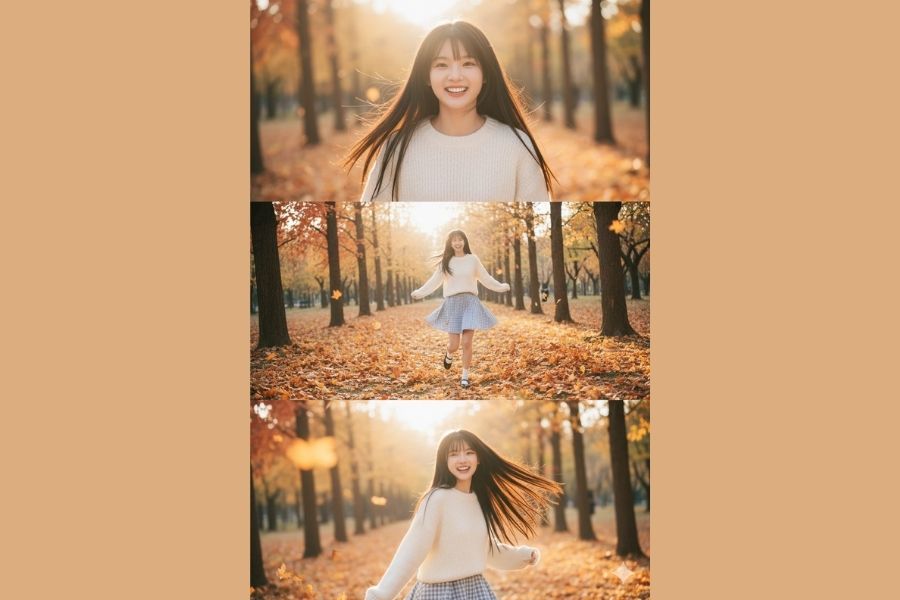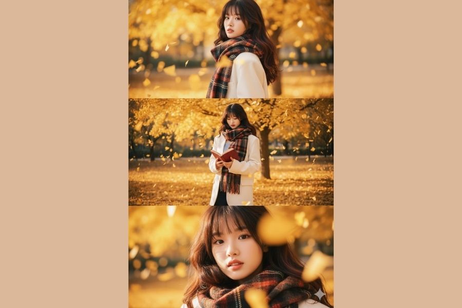 Bên cạnh bố cục ổn định, Gemini còn nổi bật ở khả năng tái hiện không khí và cảm xúc mùa thu một cách tự nhiên. AI này hiểu rõ các yếu tố mang tính trừu tượng như gió nhẹ, lá rơi chậm, ánh nắng cuối ngày hay cảm giác hoài niệm đặc trưng của mùa thu. Khi áp dụng vào trend ảnh 3 khung, mỗi khung hình không chỉ đẹp về mặt thị giác mà còn góp phần kể một câu chuyện ngắn, tạo chiều sâu cảm xúc và tăng khả năng lan tỏa trên mạng xã hội.