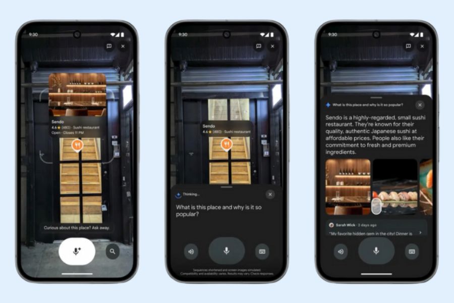 Sự kết hợp giữa Lens và AI Gemini đã mở ra cách khám phá thế giới hoàn toàn mới ngay trong Google Maps. Thay vì phải nhập tên địa điểm, người dùng chỉ cần mở camera điện thoại và quét xung quanh khu vực đang đứng.