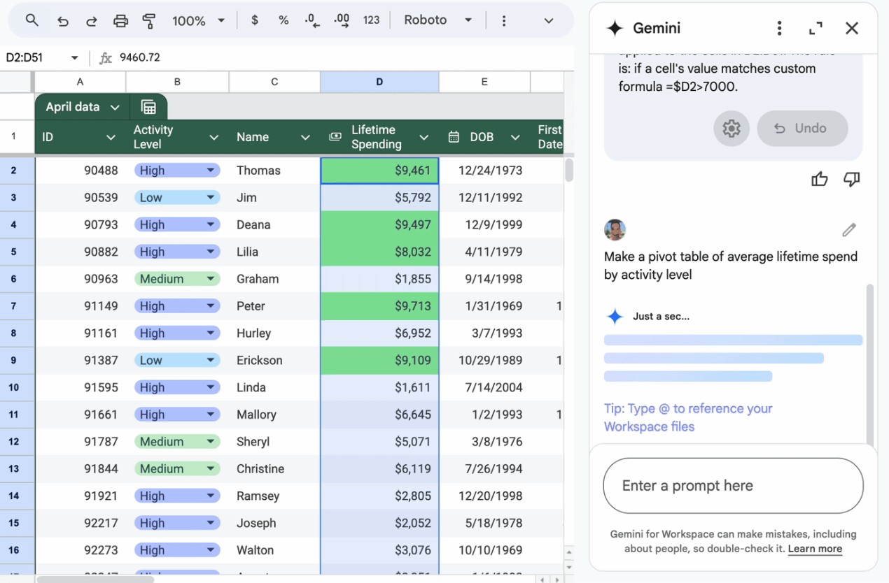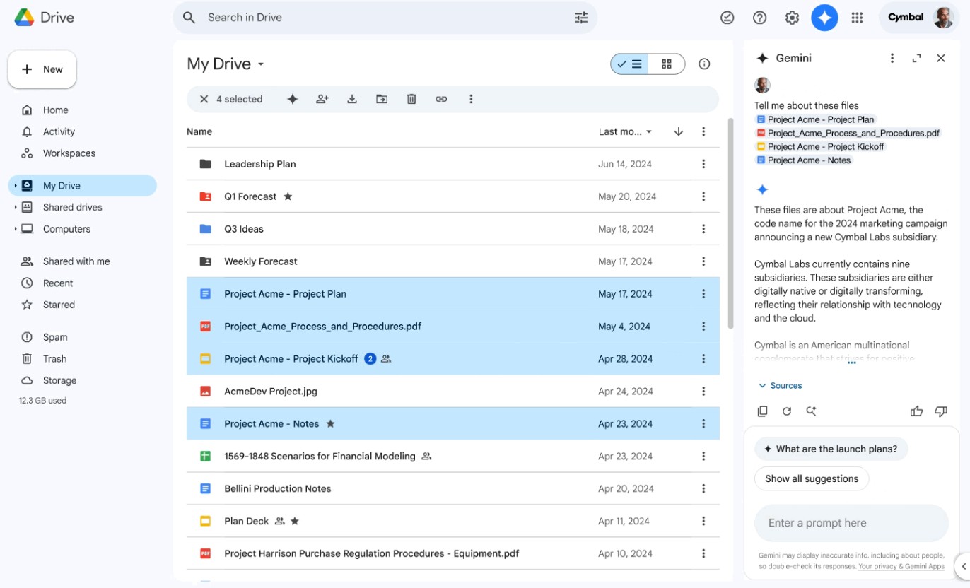 Chẳng hạn, một nhà quản lý có thể yêu cầu Gemini tạo báo cáo tổng hợp dựa trên dữ liệu bán hàng trong bảng tính, email trao đổi với khách hàng và tài liệu chiến lược trong Drive. AI sẽ phân tích tất cả nguồn dữ liệu đó để tạo ra một bản báo cáo hoàn chỉnh.