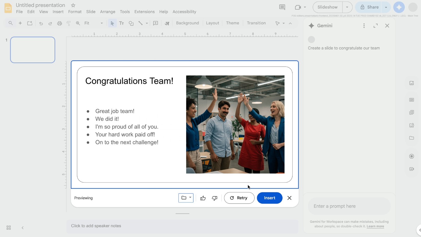 Chuẩn bị một bài thuyết trình thường là công việc tốn nhiều thời gian, đặc biệt khi phải thiết kế bố cục và lựa chọn màu sắc phù hợp. Nhờ Gemini, quá trình này trở nên đơn giản hơn rất nhiều trong Google Slides.
