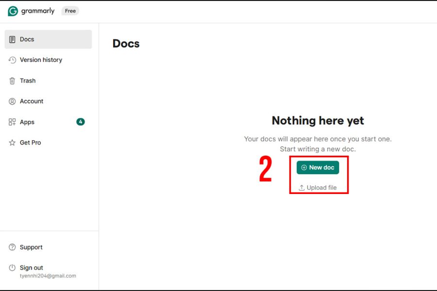 Nhấn New doc để mở trang soạn thảo trực tiếp trên nền tảng Grammarly AI; tại đây mọi lỗi ngữ pháp, chính tả sẽ được gạch chân và giải thích tức thì. Việc soạn thảo trực tiếp trên New doc giúp bạn vừa viết vừa học: mỗi gợi ý đều kèm lời giải thích ngắn giúp hiểu nguyên nhân sai và tránh lặp lại lỗi tương tự.