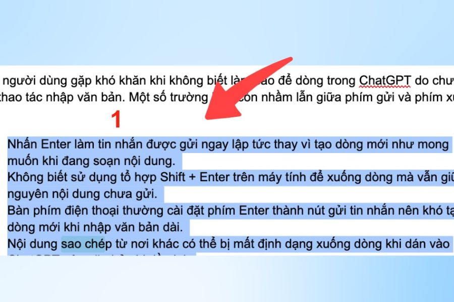 Nếu bạn đã chuẩn bị nội dung trước đó trong các công cụ như Google Docs hoặc ứng dụng ghi chú, việc sao chép vào ChatGPT là cách giúp giữ nguyên định dạng xuống dòng một cách nhanh chóng và chính xác.