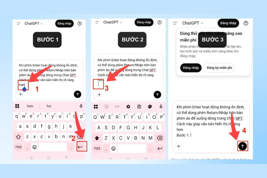 Trên điện thoại, nhiều bàn phím mặc định biến phím Enter thành nút gửi, khiến việc tạo dòng mới trở nên bất tiện hoặc không thực hiện được