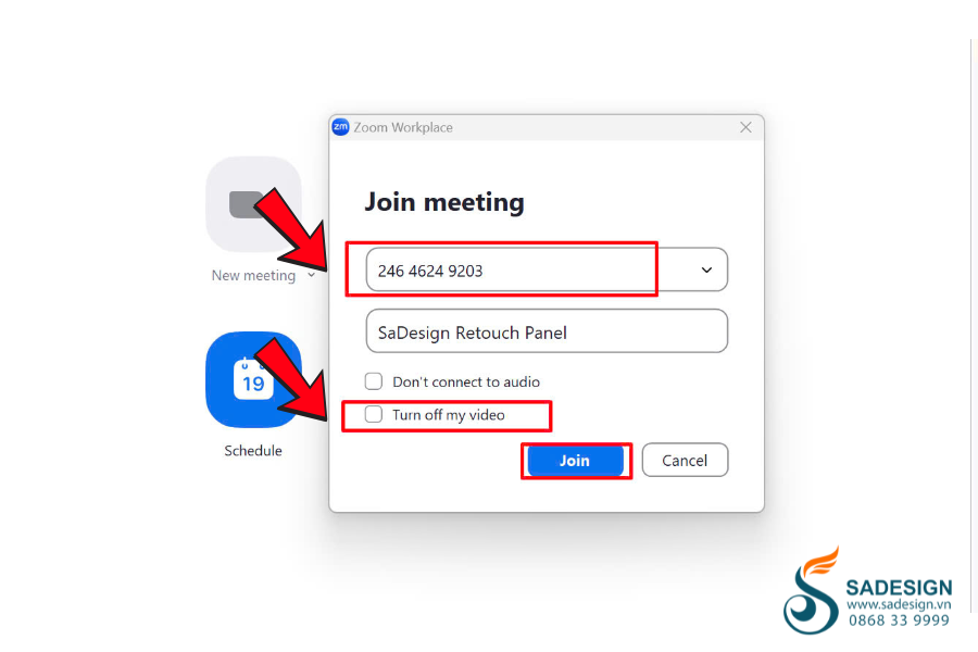 Bạn chọn Join ở giao diện chính để quay lại cuộc họp. Sau đó nhập ID cuộc họp, bạn click bỏ ô Turn off my video rồi nhấn Join để vào cuộc họp.