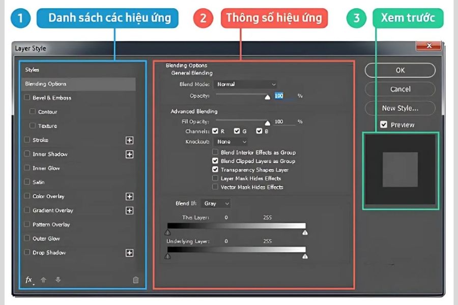 Bước 1: Nhấp chuột phải vào hình thu nhỏ của layer muốn áp dụng pattern, chọn Blending Options để mở hộp thoại Layer Style. Đây là nơi bạn có thể thêm các hiệu ứng như Drop Shadow, Bevel & Emboss hay chính Pattern Overlay.