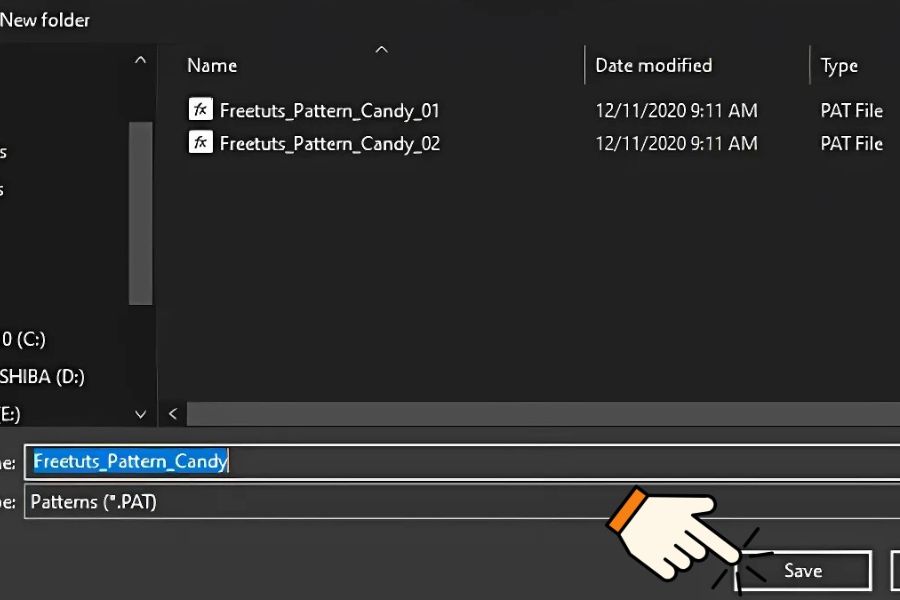 Bước 3: Nhấn Save. Photoshop sẽ tự động lưu các pattern đã chọn dưới định dạng .PAT, sẵn sàng để nhập lại trong dự án khác hoặc chia sẻ với cộng đồng thiết kế. Đây là cách tuyệt vời để bảo quản những họa tiết yêu thích và tiết kiệm thời gian cho các dự án tương lai.