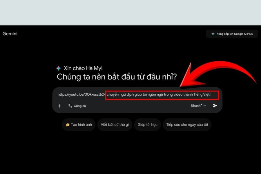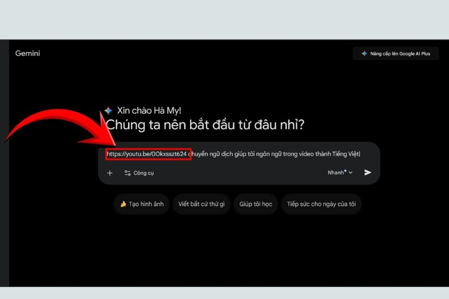 Nếu video bạn muốn dịch đang có sẵn trên YouTube, chỉ cần sao chép đường link và dán trực tiếp vào khung trò chuyện của Gemini. Cách này đặc biệt tiện lợi khi bạn muốn dịch video học tập, phỏng vấn, talkshow hoặc các nội dung chia sẻ kiến thức từ nước ngoài.