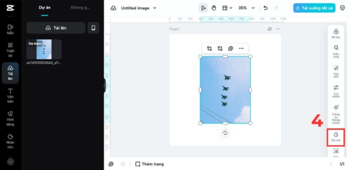Bước 4: Trên thanh công cụ bên phải, chọn mục “Opacity”