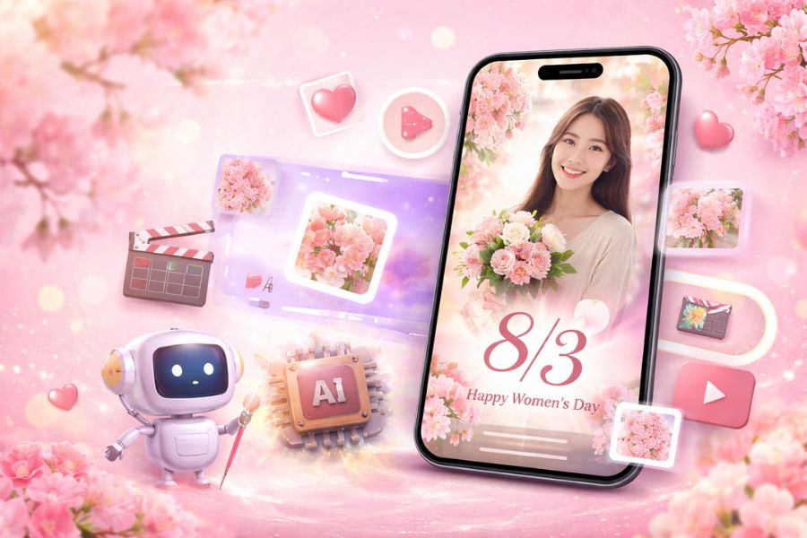 Tạo video chúc mừng 8/3 bằng AI chưa bao giờ đơn giản và thú vị đến thế. Chỉ với vài thao tác, bạn đã có thể gửi đến mẹ, vợ, người yêu hay những người phụ nữ quan trọng một món quà chứa đựng cảm xúc chân thành, đẹp đẽ và độc nhất. AI Video – AI Video Generator không chỉ giúp bạn tiết kiệm thời gian mà còn mở ra cơ hội sáng tạo không giới hạn, ngay cả khi bạn chưa từng chỉnh sửa video trước đây. Hy vọng hướng dẫn trên sẽ giúp bạn tự tin tạo nên một sản phẩm thật ý nghĩa để lan tỏa yêu thương trong ngày Quốc tế Phụ nữ. Chúc bạn có một mùa 8/3 thật trọn vẹn và đầy cảm xúc!