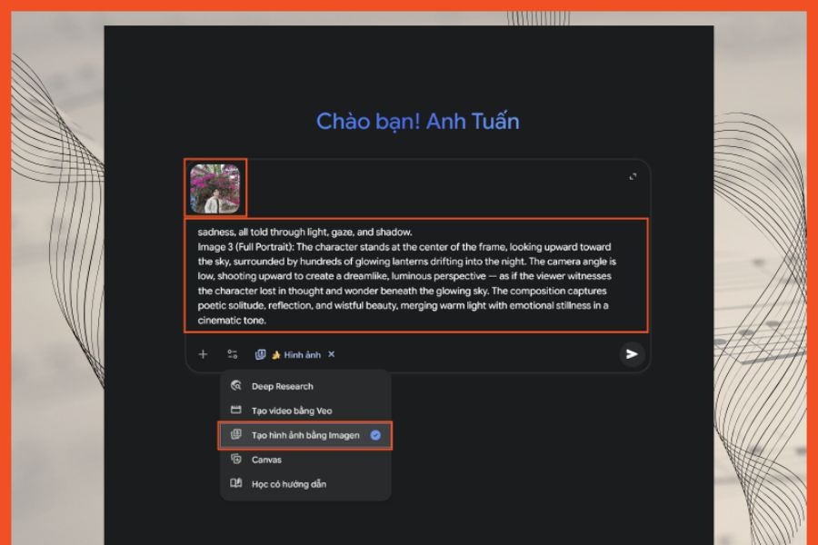 Quan trọng: Hãy giữ nguyên câu lệnh bằng tiếng Anh để Gemini hiểu và cho ra kết quả đẹp và chính xác nhất.