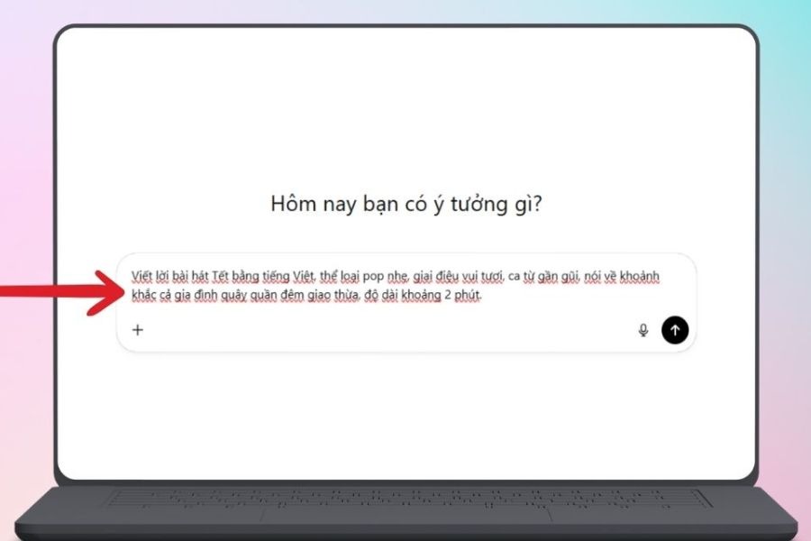 Định hướng nội dung bài hát đúng tinh thần và văn hóa Tết Việt: Nhạc Tết thường gắn liền với những hình ảnh quen thuộc như sum họp gia đình, bánh chưng, lì xì, chợ hoa hoặc khoảnh khắc giao thừa. Khi viết lời hoặc mô tả cho AI, bạn nên sử dụng những hình ảnh và cảm xúc gần gũi với văn hóa Việt Nam. Điều này giúp bài hát trở nên thân thuộc, dễ tạo sự đồng cảm và phù hợp với người nghe trong nước hơn.
