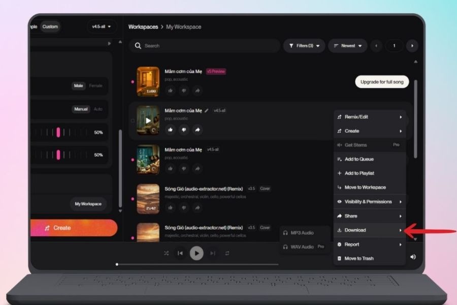Thử nghiệm nhiều phiên bản khác nhau để chọn ra bản tốt nhất: Với cùng một lời bài hát, AI có thể tạo ra nhiều phiên bản khác nhau về giai điệu và cách thể hiện. Bạn nên thử tạo nhiều lần và nghe kỹ từng phiên bản. Việc so sánh sẽ giúp bạn chọn được bản nhạc phù hợp nhất với mục đích sử dụng, đồng thời khám phá thêm nhiều phong cách thú vị.
