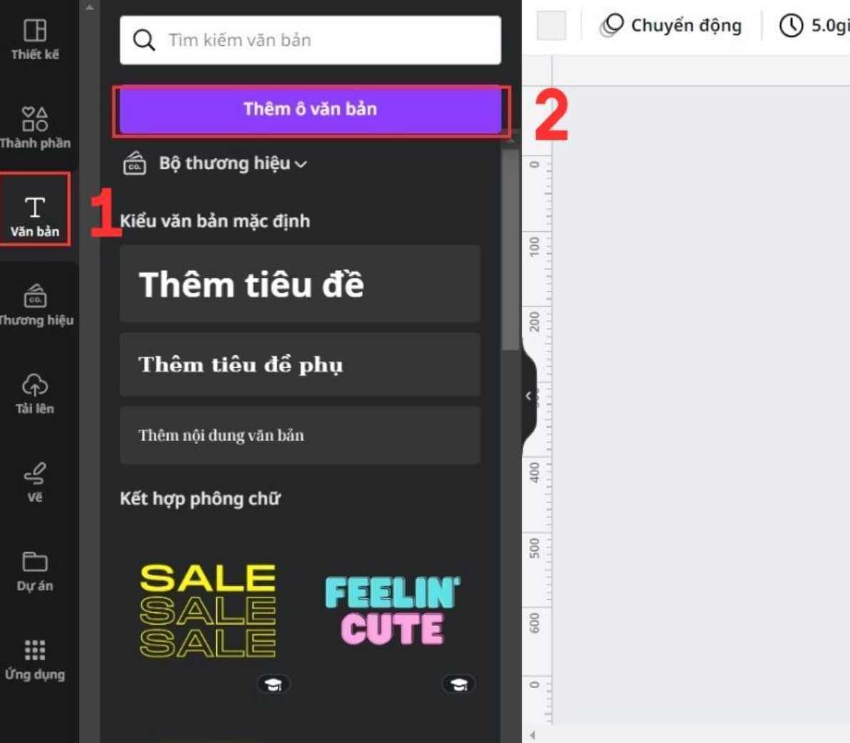 Kế đến là Văn bản: đoạn văn hoặc các tổ hợp typography. Bạn có thể thêm một ô văn bản trống và tùy chỉnh mọi yếu tố như font chữ, kích thước, độ dãn dòng, trọng lượng, căn chỉnh, hiệu ứng và animation.