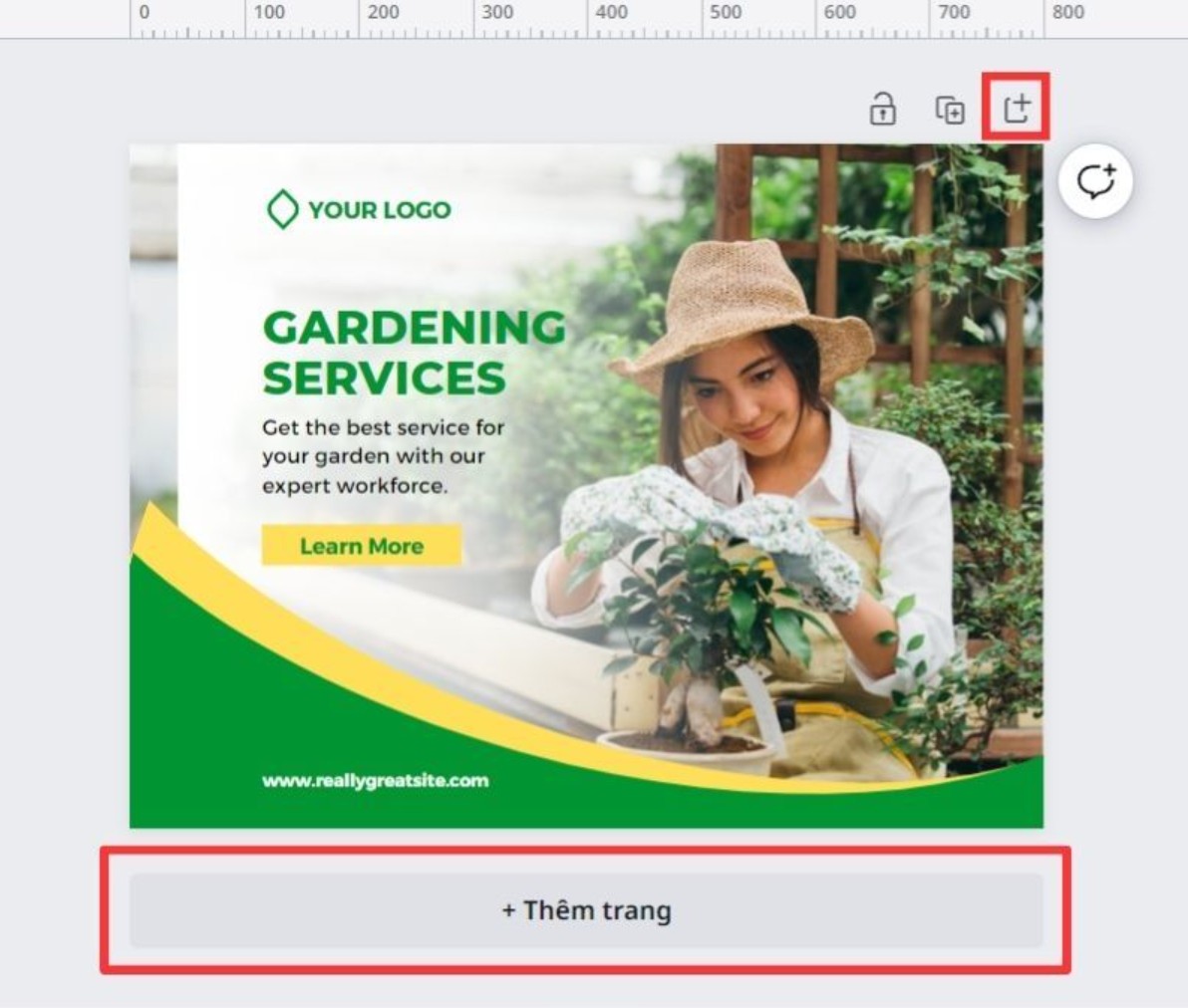 Để thêm slide mới, bạn nhấn nút “+ Thêm trang” nằm dưới slide hiện tại. Nếu bạn muốn tạo một slide giống hệt slide đang có, bạn nhấn biểu tượng Tạo bản sao ở góc phải. Điều này tiện lợi khi bạn muốn giữ bố cục nhưng thay đổi nội dung.