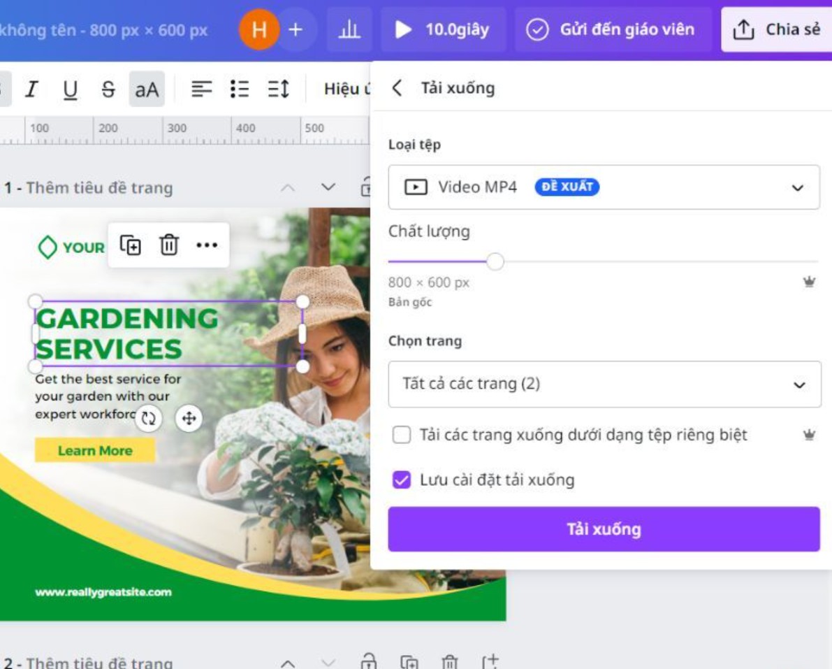 Trong trường hợp bạn cần gửi file cho giảng viên, khách hàng hoặc tải về để trình chiếu offline, Canva cho phép tải xuống với nhiều định dạng.