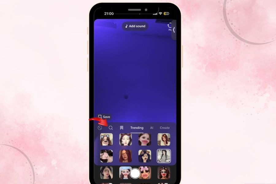Tại giao diện quay video, chọn mục Hiệu ứng (Effects) ở góc màn hình. Sau đó lướt sang phải đến cuối danh sách và nhấn vào biểu tượng kính lúp để mở công cụ tìm kiếm hiệu ứng. Đây là nơi bạn có thể tìm các filter đang hot trên TikTok, bao gồm những hiệu ứng tạo bó hoa từ ảnh cá nhân đang được nhiều người dùng chia sẻ.
