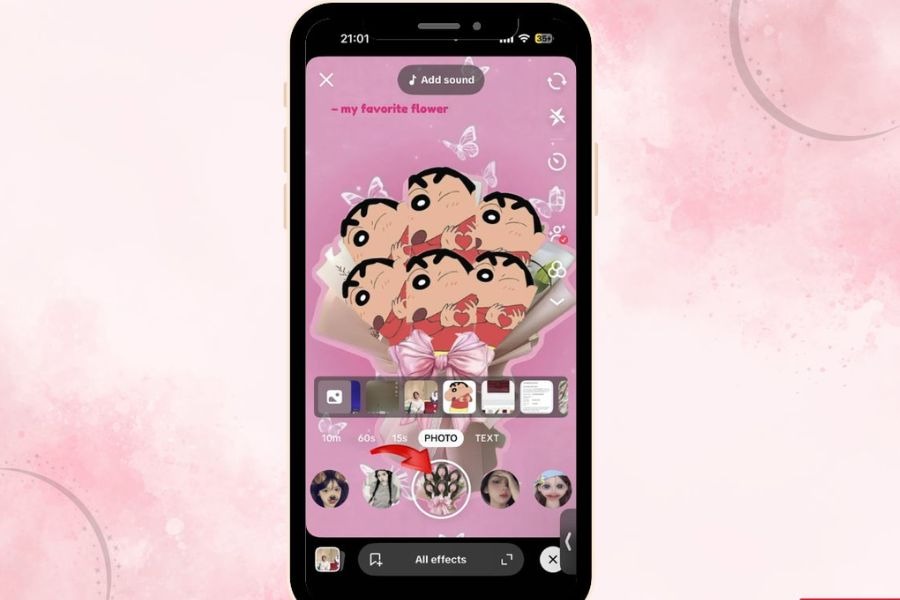 Thử nhiều hiệu ứng bó hoa khác nhau: Ngoài filter “Favorite Flower”, trên TikTok còn rất nhiều hiệu ứng bó hoa ảnh cá nhân khác được cộng đồng sáng tạo. Bạn có thể thử tìm thêm các từ khóa như flower bouquet, face flower, flower effect để khám phá nhiều phong cách khác nhau. Việc thử nhiều filter giúp bạn chọn được hiệu ứng phù hợp nhất với bức ảnh và tạo ra video thú vị hơn.