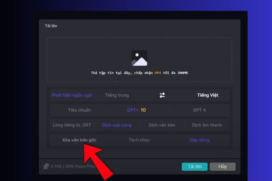 Trong phần tùy chọn xử lý, bạn có thể chọn Xóa văn bản gốc để AI loại bỏ phụ đề cũ trước khi chèn phụ đề tiếng Việt. Nhờ đó, video review phim của bạn sẽ có bố cục gọn gàng hơn, phụ đề hiển thị rõ ràng và tập trung hoàn toàn vào nội dung bạn muốn truyền tải.