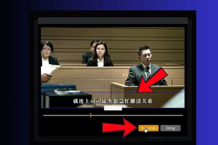 Sau khi kích hoạt chế độ này, bạn dùng chuột khoanh đúng khu vực có phụ đề gốc trên khung hình video. Hãy điều chỉnh khung quét sao cho vừa sát với dòng chữ, tránh dư thừa nền xung quanh, rồi nhấn Xác nhận để hệ thống ghi nhận và tiếp tục xử lý.