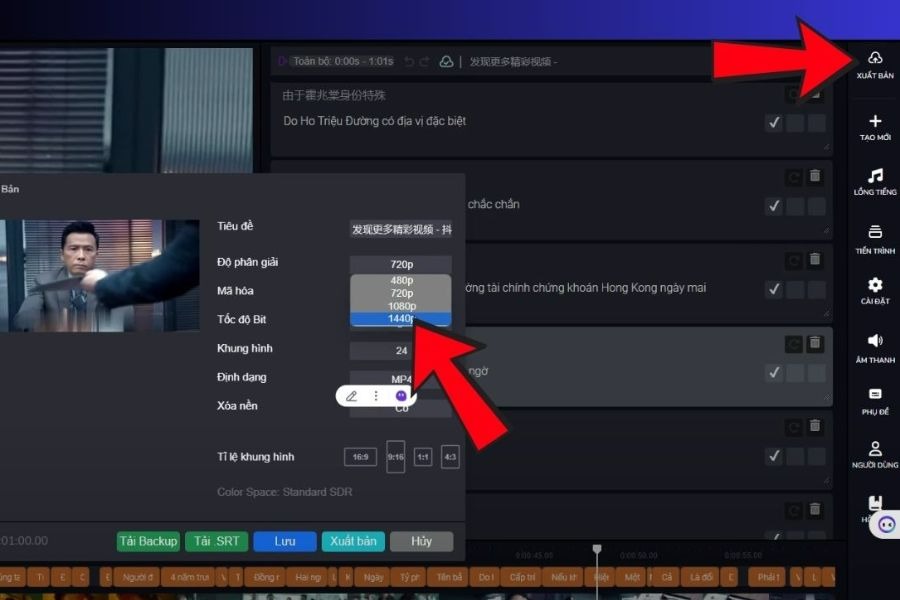 Trước khi xuất video, bạn cần chọn độ phân giải phù hợp với mục đích sử dụng và nền tảng đăng tải. Hệ thống thường cung cấp nhiều mức độ phân giải để bạn linh hoạt lựa chọn tùy theo nhu cầu và khả năng lưu trữ.