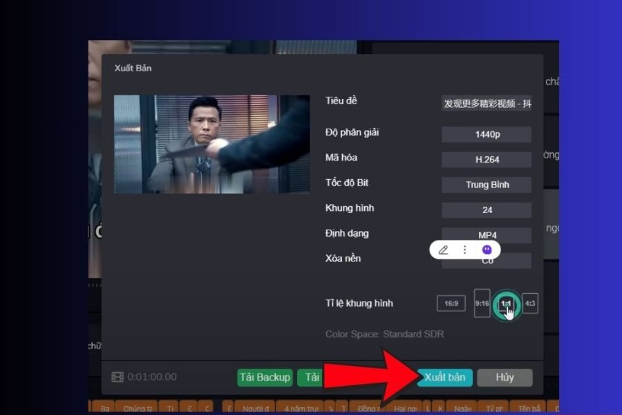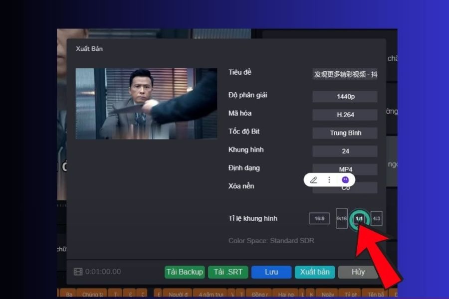 Sau khi đã chọn độ phân giải, bạn tiếp tục thiết lập tỉ lệ khung hình để video hiển thị đúng chuẩn trên từng nền tảng. Đây là bước quan trọng giúp video không bị cắt khung, lệch bố cục hoặc hiển thị kém thẩm mỹ khi đăng tải.