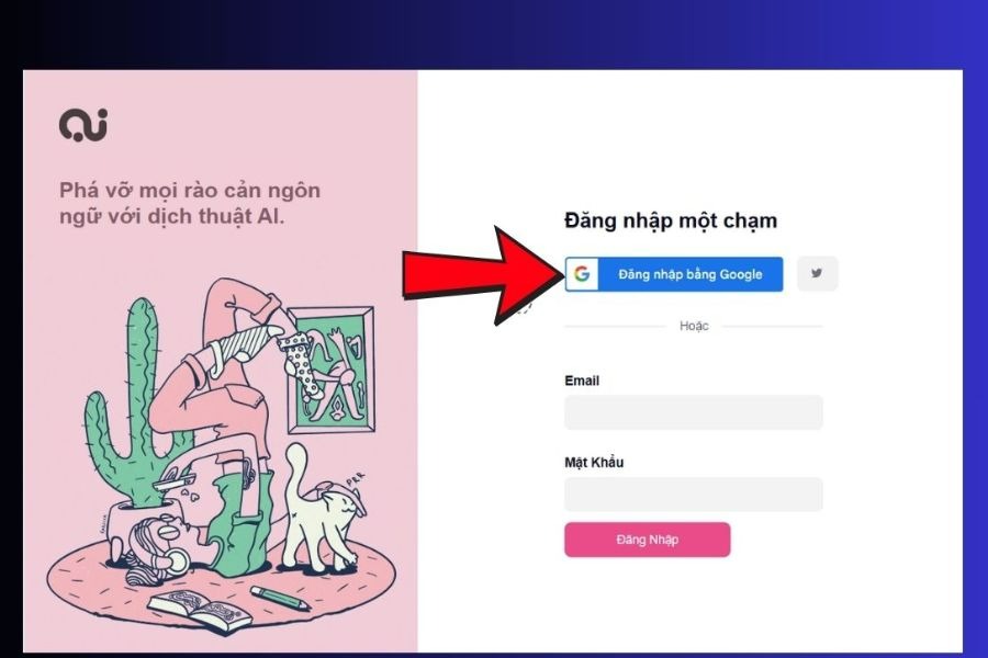 Sau khi hoàn tất đăng ký, bạn tiến hành đăng nhập để sử dụng đầy đủ các tính năng của công cụ. DichTuDong.com hỗ trợ đăng nhập nhanh bằng Google, giúp bạn tiết kiệm thời gian và không cần nhớ thêm mật khẩu mới. Chỉ với một cú nhấp chuột, bạn đã có thể truy cập ngay vào hệ thống.