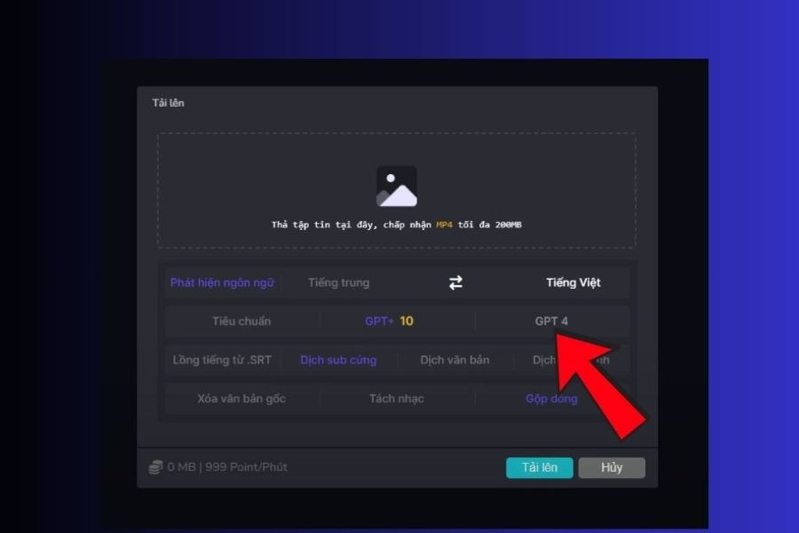 Ngay sau khi ngôn ngữ đã được xác định, bạn cần lựa chọn công nghệ dịch phù hợp để AI xử lý nội dung video. Thông thường, hệ thống sẽ cung cấp các tùy chọn như GPT+ hoặc GPT-4, mỗi công nghệ phù hợp với nhu cầu và độ phức tạp khác nhau của video review phim.