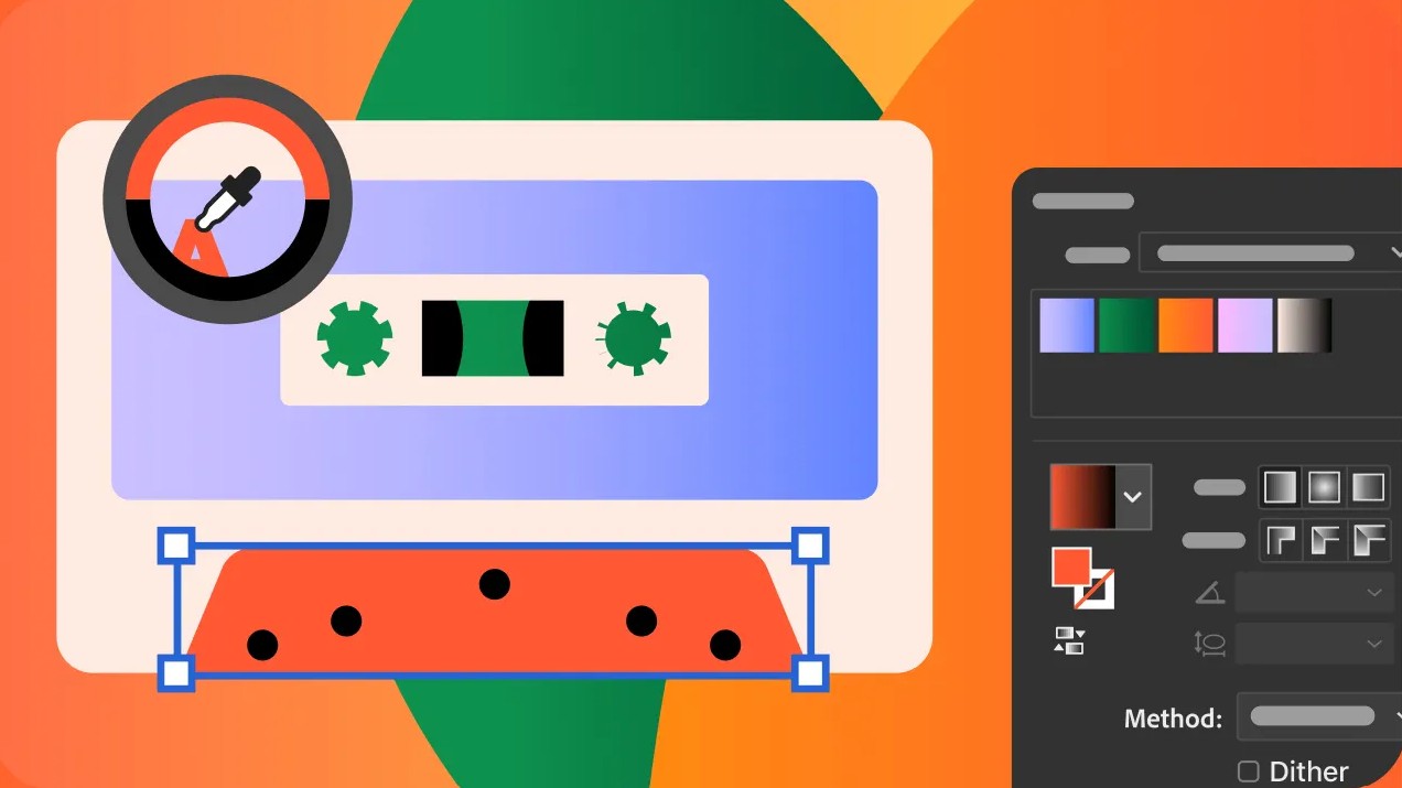 Màu sắc không chỉ là yếu tố thẩm mỹ, mà còn là công cụ truyền tải cảm xúc và thông điệp. Illustrator mới mang đến Dải chuyển màu mượt mà hơn cùng các thiết lập sẵn giúp designer kiểm soát chuyển sắc chính xác đến từng chi tiết.