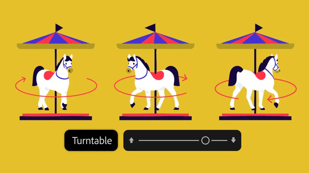 Với tính năng Turntable trong Illustrator (BETA), designer có thể nhanh chóng xoay và quan sát tác phẩm từ nhiều góc nhìn khác nhau. Điều này mở ra tiềm năng lớn cho minh họa, thiết kế sản phẩm và thiết kế nhân vật.