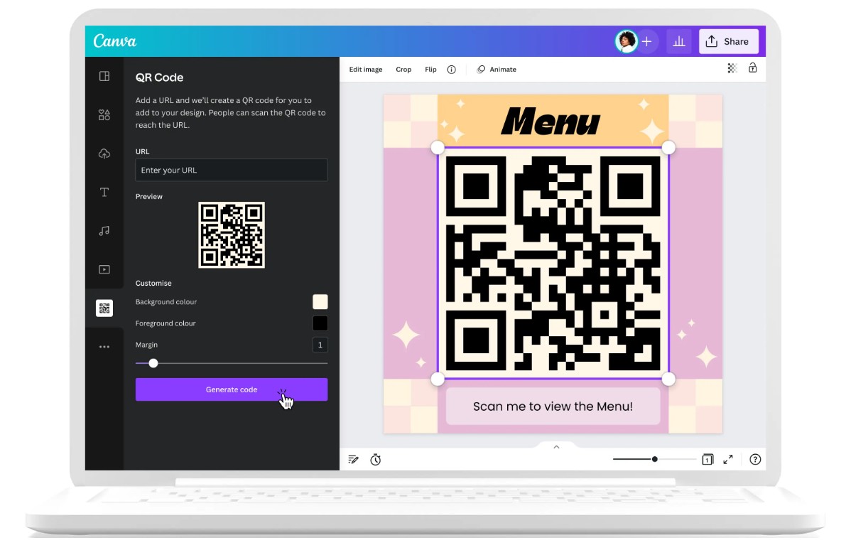 Canva giúp bạn tận dụng tối đa sức mạnh đó bằng trình tạo mã QR miễn phí, dễ dùng, được tích hợp trực tiếp trong trình thiết kế. Không cần dùng thêm công cụ bên ngoài, bạn có thể vừa thiết kế poster, vừa thêm mã QR và kiểm soát toàn bộ bố cục trong cùng một giao diện.