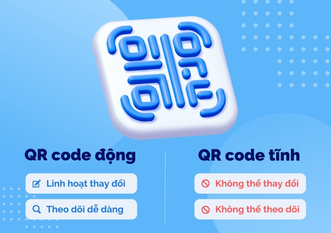 Mã QR linh động, ngược lại, hoạt động như một “cầu nối có thể cập nhật”. Khi người dùng quét mã, họ được dẫn đến một đường dẫn trung gian cho phép bạn thay đổi đích đến sau này mà không cần in lại mã. Đây là loại QR phổ biến trong các chiến dịch marketing lớn, giúp theo dõi dữ liệu, lượt quét và hiệu quả quảng bá theo thời gian thực.